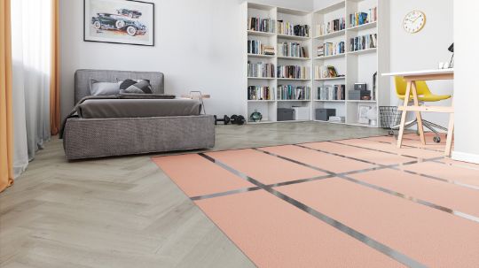 Кварцевый паркет имеет "замковое" соединение, поэтому легло укладывается и позволяет создавать беспороговую поверхность площадью до 144кв.м.